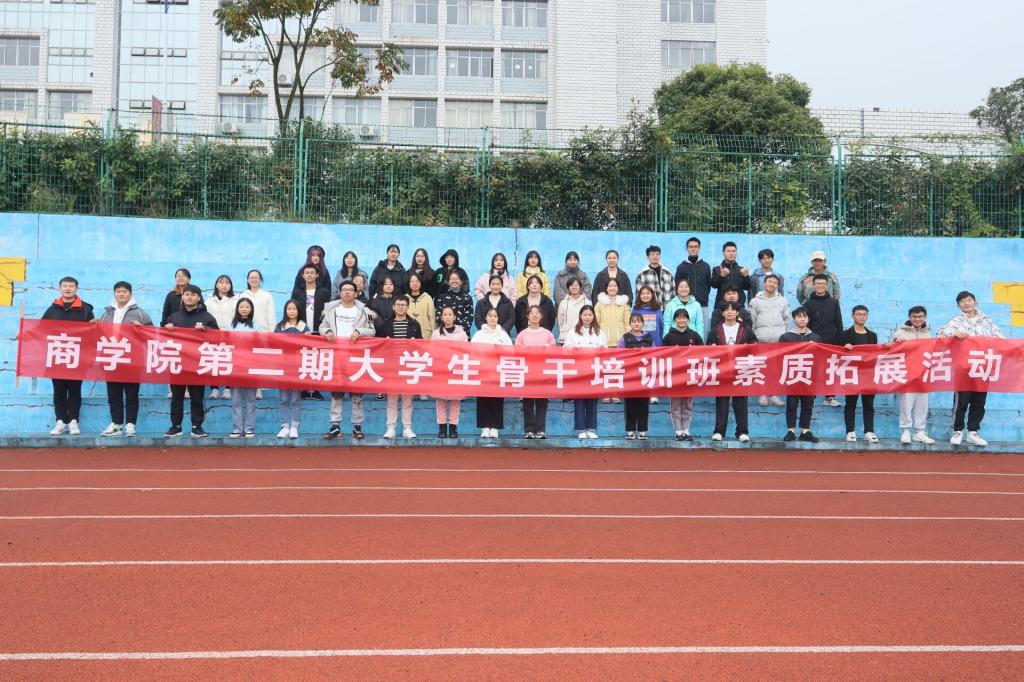 2020年11月29日上午9:00-11:30,在宣传部代理部长金泽的组织下,商学院骨干培训班开展了学生素质拓展活动。全体学员在田径场上积极参加各项活动。