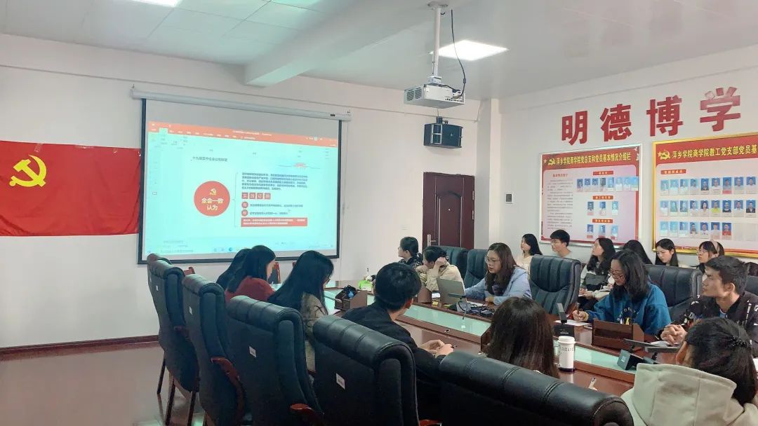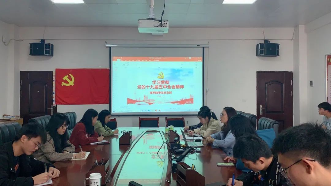 为认真学习贯彻党的十九届五中全会精神,2020年11月06日下午13时30分,商学院学生党支部在跬步楼1204教室召开关于“学习贯彻十九届五中全会精神”党课教育活动。参与此次党课的人员主要有商学院学生党支部书记朱艳清,商学院预备党员及入党积极分子。