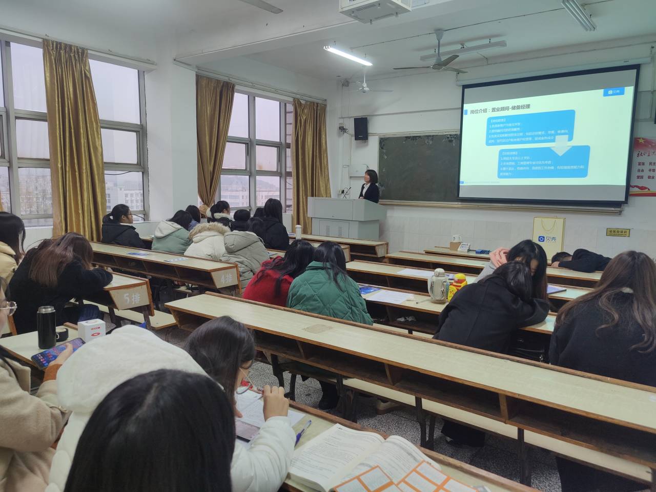 为了更好的解决大学生就业难题,缓解大学生毕业压力,为了更好地拓宽毕业生就业渠道。商学院于2020年12月4日下午3时在跬步楼1609室举行贝壳找房公司宣讲会,商学院毕业生参加本次宣讲会。
