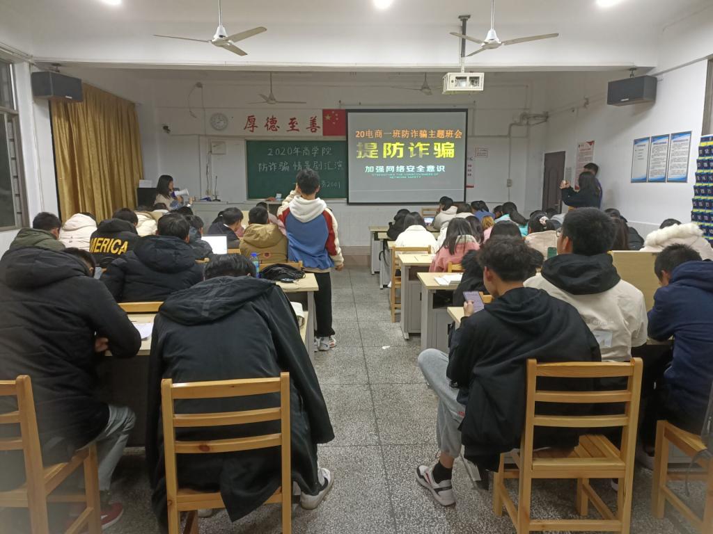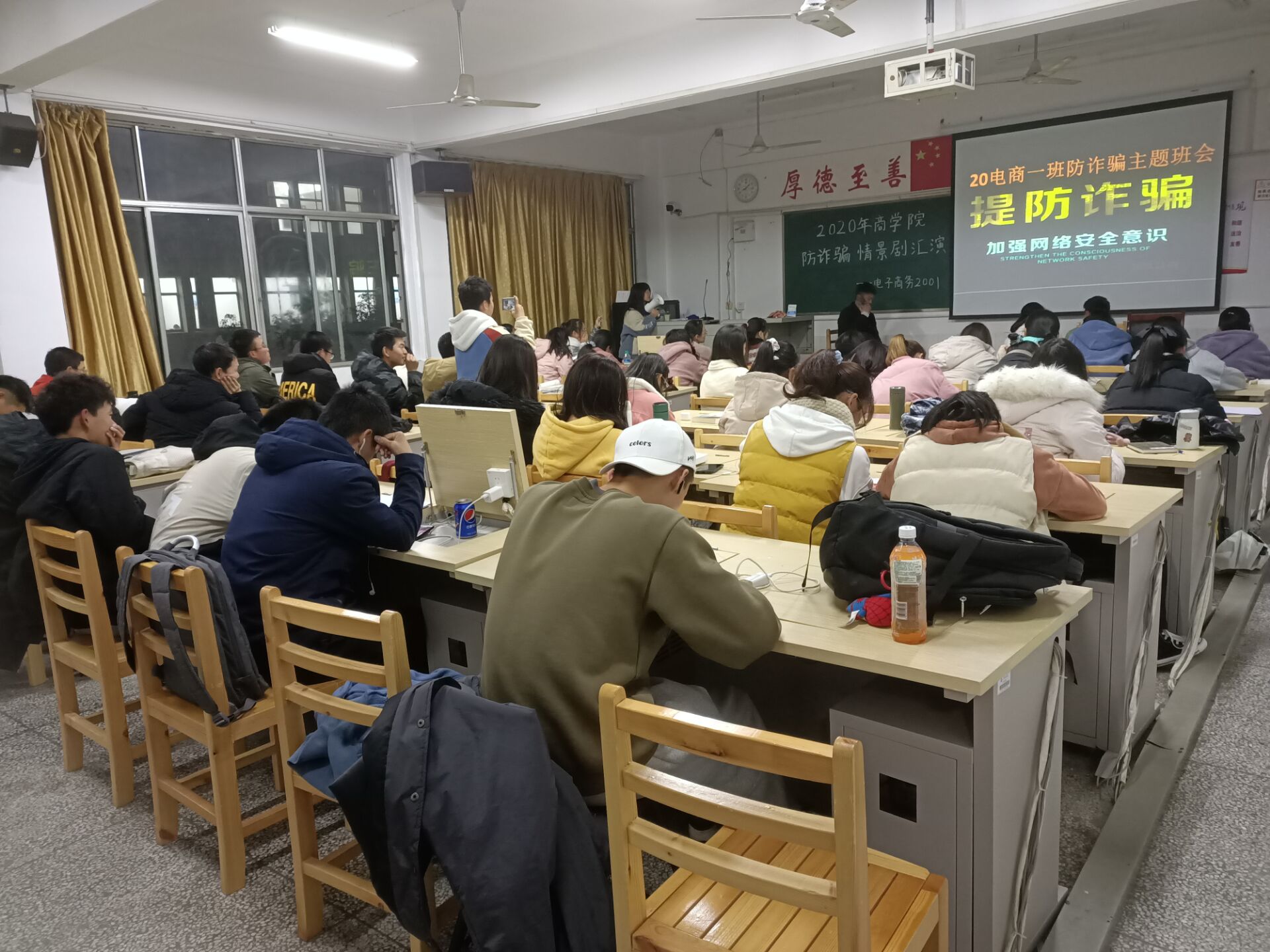 商学院各班级于2020年12月10日开展了防诈骗主题班会,网络诈骗电信诈骗方式、手段层出不穷。为提高同学们安全防范意识,切实保障同学们的财物安全,商学院开展了防范新型电信网络诈骗专题班会,由各班同学组织商学院辅导员参加并召开班会。
