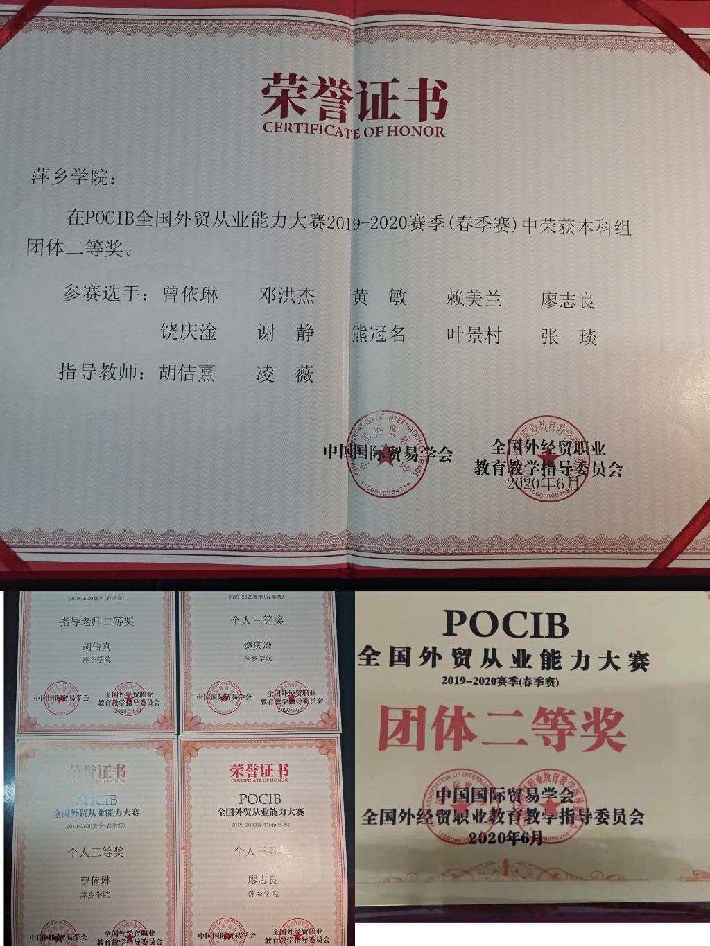 第九届POCIB全国外贸从业能力大赛(春季赛)于2020年6月18日落下帷幕。商学院学子在胡佶熹、凌薇老师的指导下,喜获全国本科组团体二等奖1项,个人三等奖4项。