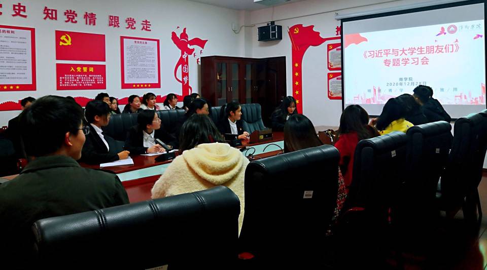 2020年12月28日12:10,为加强思想政治建设,提高个人政治素养,商学院于跬步楼1204室召开团总支政治理论学习会议。