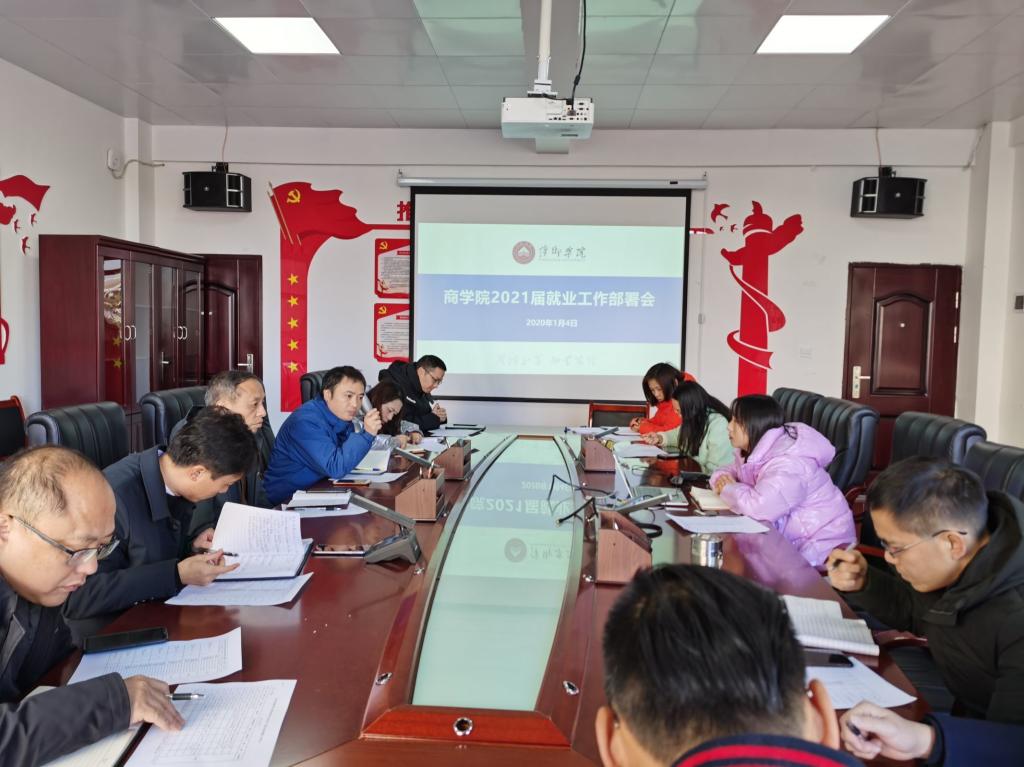 2020年12月31日上午10:00,商学院于跬步楼1204会议室召开2021届就业工作部署研判会,对就业工作的推进做好部署。商学院党总支书记曾敏、商学院团总支书记朱艳清、各毕业班班主任和辅导员参加此次会议。
