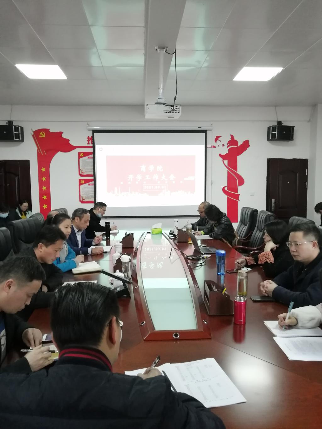 2021年3月1日,商学院召开开学工作会议。参加会议的有校党委委员田常红、商学院党总支书记曾敏、商学院院长黄绍斌以及商学院全体教职工。会议由商学院院长黄绍斌主持。
