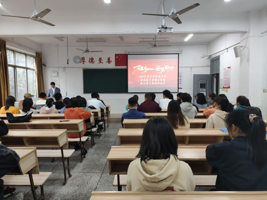 2021年4月15日12:10,商学院于跬步楼1114室举办了商学院苦荞薄片营销大赛暨脱口秀大赛颁奖仪式,出席本次会议的有商学院党总支书记曾敏、商学院辅导员易晶晶。