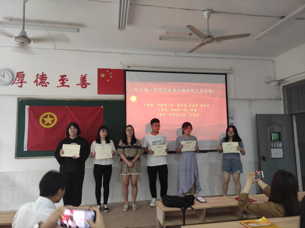 大会第二项,宣布了党史故事大赛的获奖名单,第一名是来自20电商一班的作品《党史在心中,青春勇牢记》;第二名是来自20财管一班的作品《安源安源》;第三名是来自20市营二班的作品《军旗的诞生》;易晶晶老师为获奖小组代表颁奖。