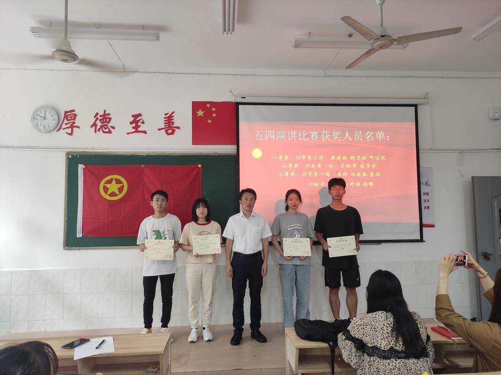 大会开始之初,主持人对各位老师及同学的到来表示由衷的感谢。大会第一项宣布了五四演讲比赛获奖名单,一等奖:20市营二班:何佳仪,胡思涵,段晓丽。二等奖:20电商一班:吴姚奔,张莎莎。三等奖:20市营一班:冯晓凯,金煜,陈彬。20财管一班:刘开明,彭辉。曾敏书记为获奖小组代表颁奖。