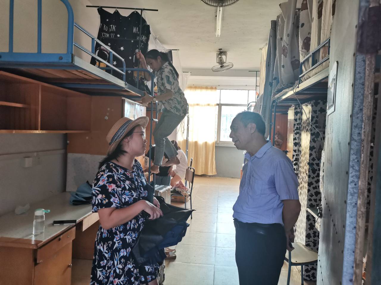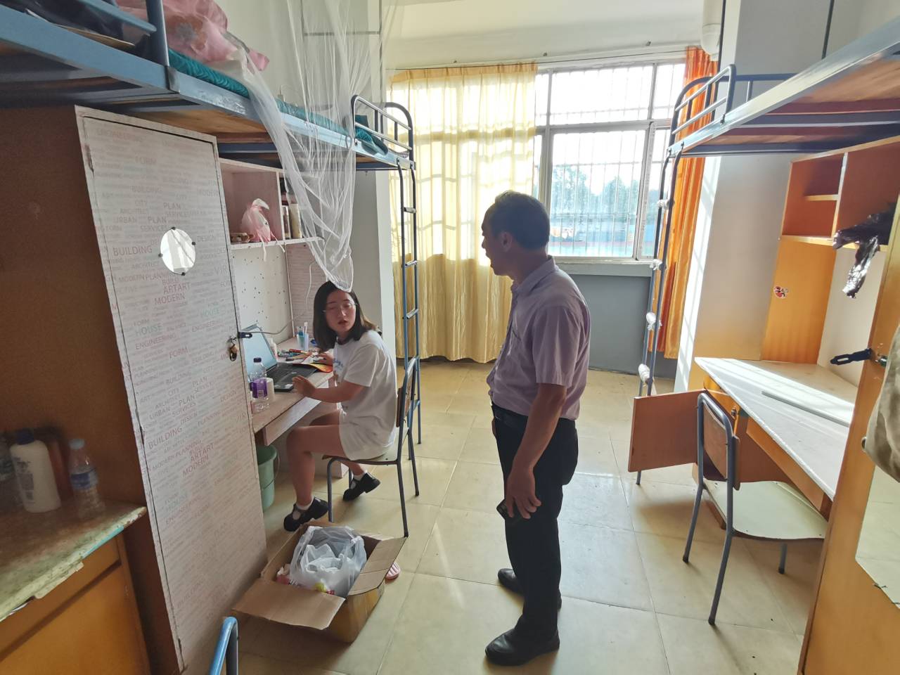 为使学生感受学校的温馨,了解学生住宿条件及生活状况,2021年9月5日下午,商学院院长黄绍斌及商学院辅导员易晶晶下寝室慰问今日到校的商学院学生。