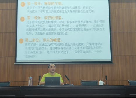 讲座伊始,王永长先生为大家讲述了中国话语体系的经济学的指导思想与理论根源,并表示具有中国话语体系的经济学既是世界经济史演进的内在规律,也是中国共产党实现下一个“一百年”奋斗目标的内在要求。并从研究背景、指导思想与理论根源、思考与展望三个方面做了系统而深入的讲述。