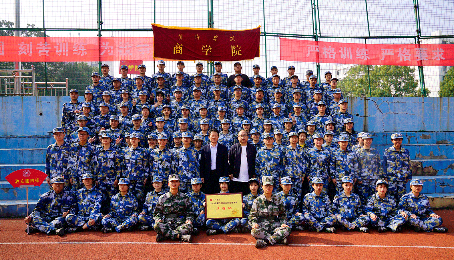 2021年10月24日上午,萍乡学院2021级学生军训汇报表演暨总结表彰大会于旧田径场举行。校领导、承训部队官兵、商学院老师及2021级全体新生参加了此次仪式。