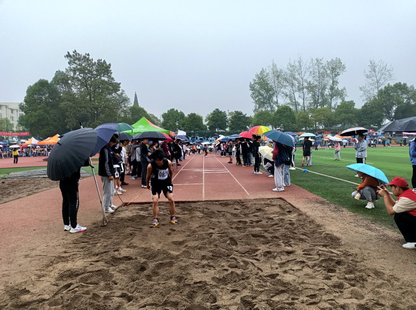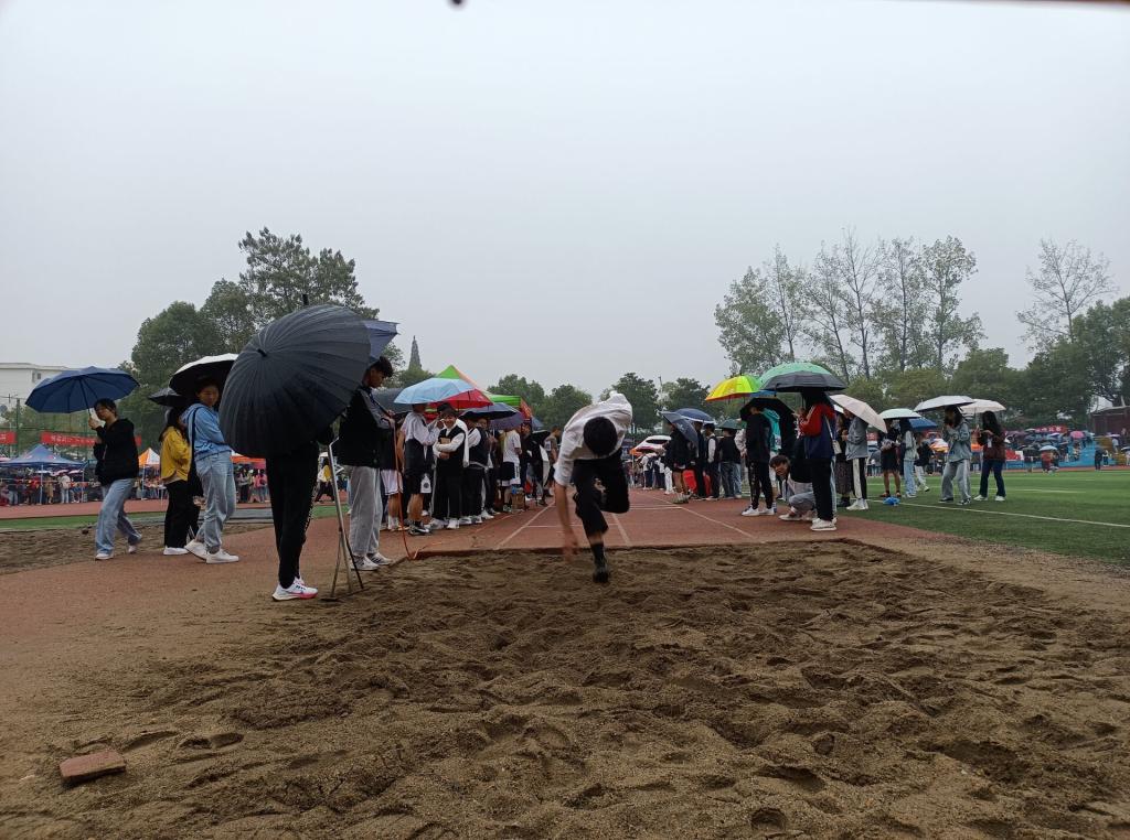 比赛开始前,运动员们有序检录入场,我院杨志雄、聂伟宽、周天乐三位同学做完热身后迅速进入比赛状态,裁判员的信号旗一挥动,观众热情呐喊着,只见他们双腿紧绷,向上高抬腿三步后,手臂加快摆动,腿部迅速交换,进行平地的加速运动,脚腾空而起,身体也向上倾斜,整个脚尖在空中形成一条完美的弧线,精美落地,最终商学院学子杨志雄、聂伟宽、周天乐取得了第五、第六、第七的好成绩。