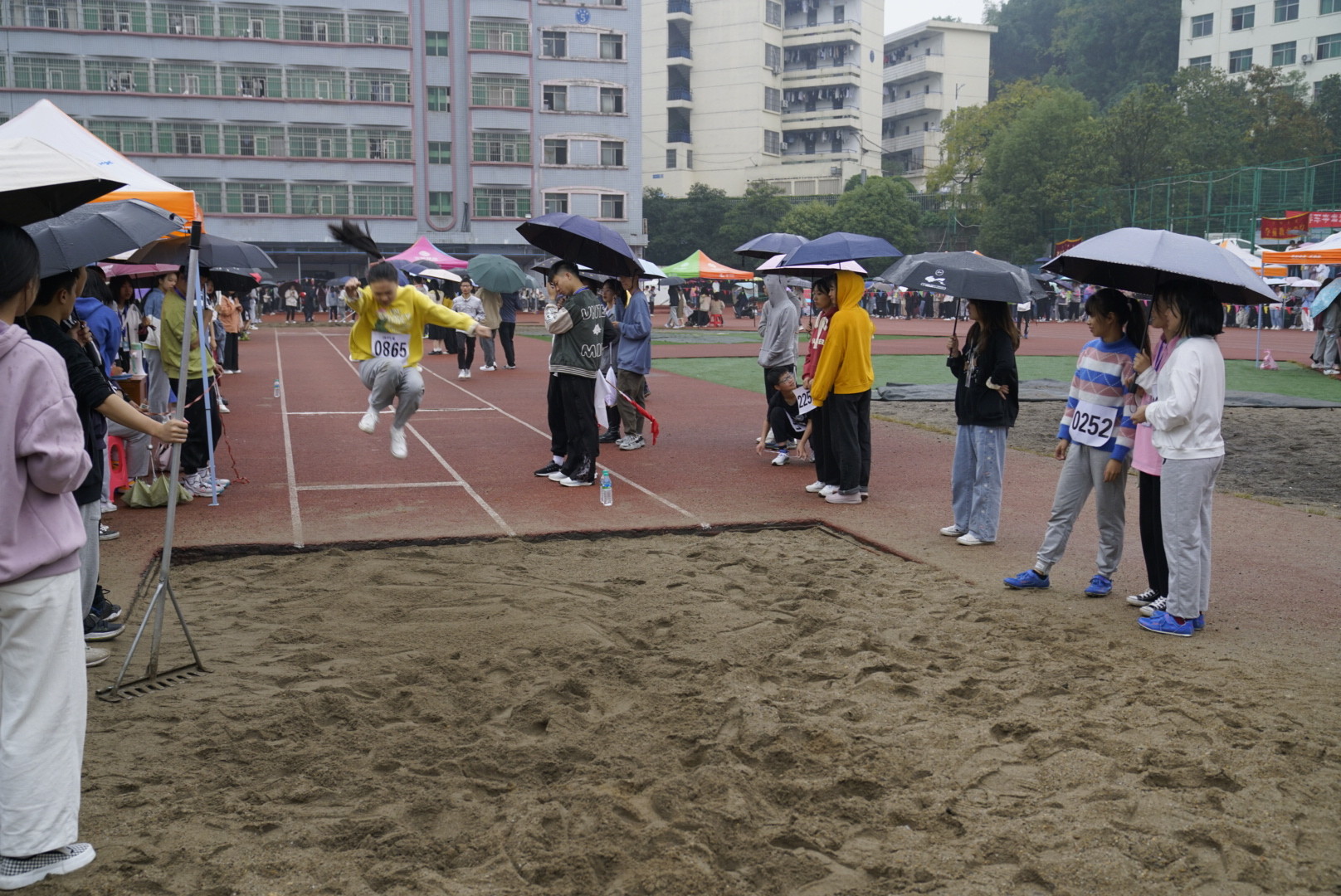 雨未停,士气涨。在教练的指导下,在朋友的期待中,在观众的呐喊声里,裁判一声令下!摆臂,起跳,腾空,收腿,胡新雨跳出一个又一个远度,给我们留下一个又一个深刻的印象。伴随着桂香阵阵,她的身影也在场上跃然闪过。