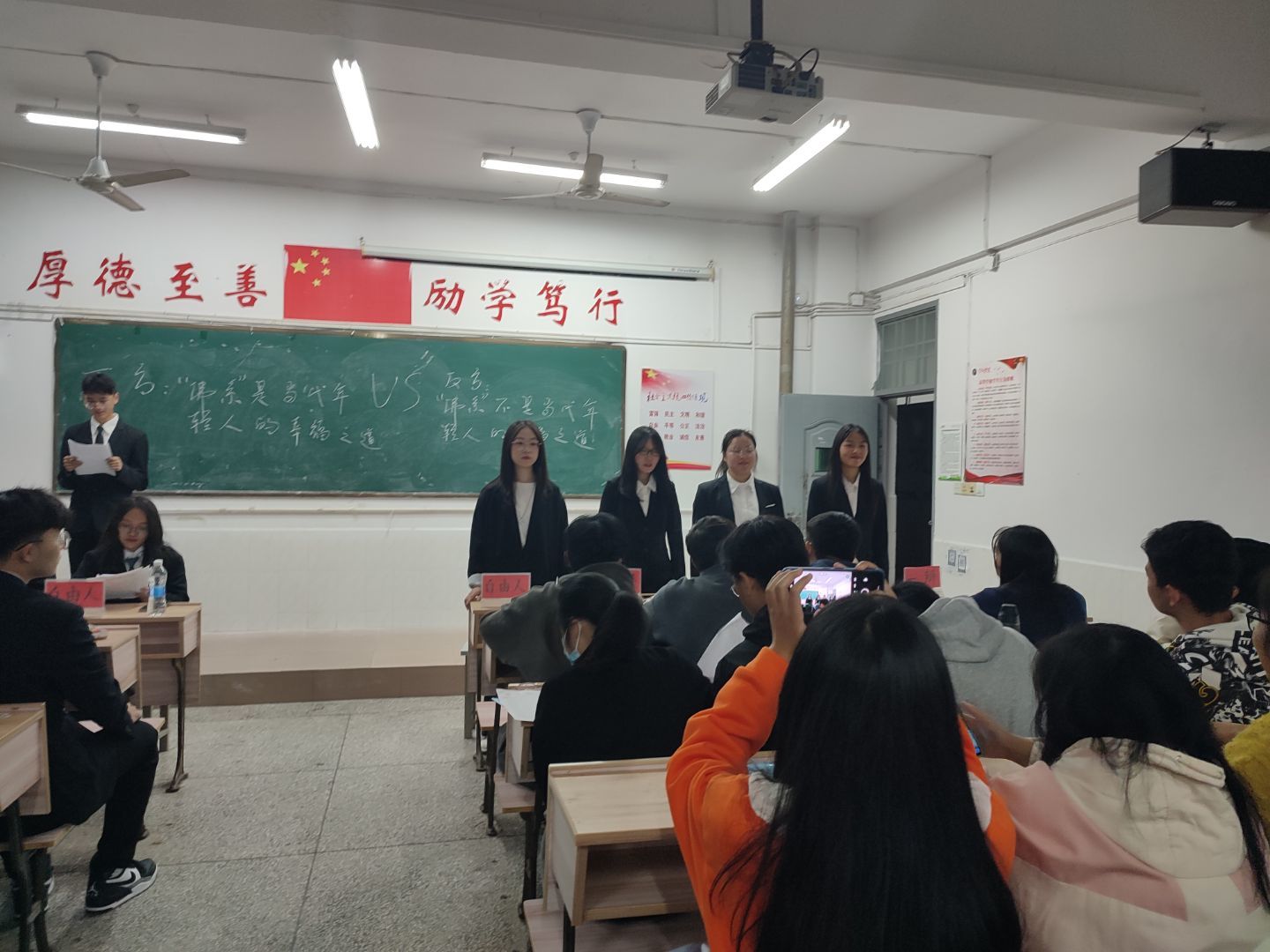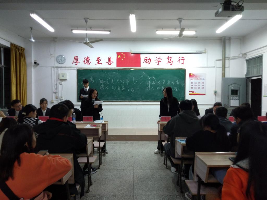 2021年11月14日19:00,商学院于跬步楼1306室举行了以“佛系”是否为当代年轻人的幸福之道为主题的班级辩论赛。本场辩论赛主席为谢紫旺,他向观众、评委们依次介绍正方辩手21级财管一班队与反方辩手21级电商一班队。