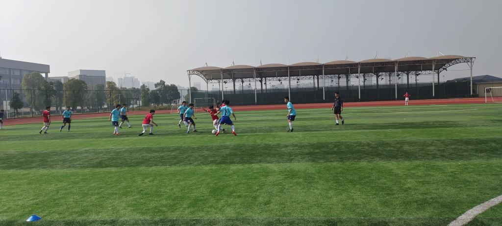 为丰富大学生课余生活,提高大学生综合素质。2021年11月18日12:40,商学院与体育学院二队在新田径场举行“新生杯”男子足球赛。