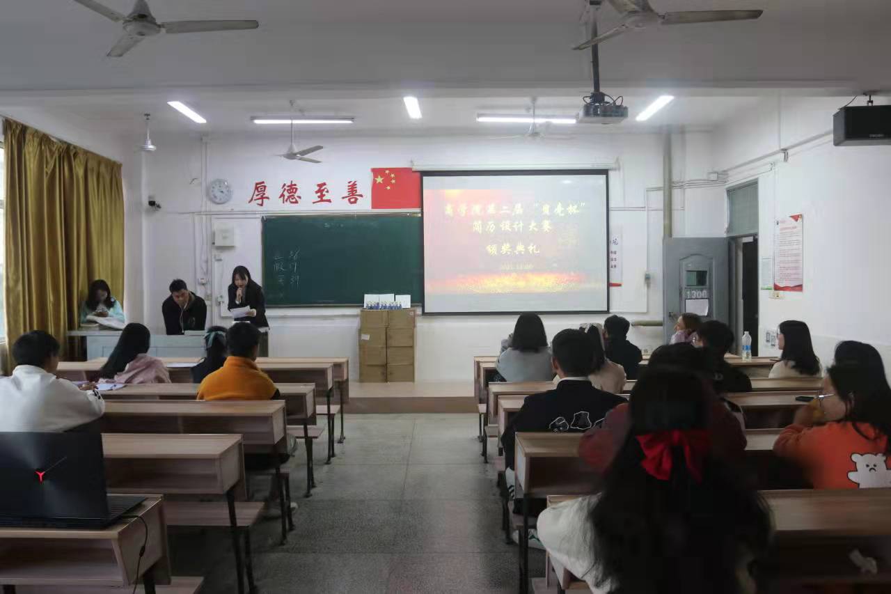 2021年12月06日17:00,商学院于跬步楼1306室举办由杭州贝壳找房科技有限公司赞助的第二届“贝壳杯”简历设计大赛颁奖典礼。商学院辅导员胡桑及商学院部分同学出席本次颁奖仪式。
