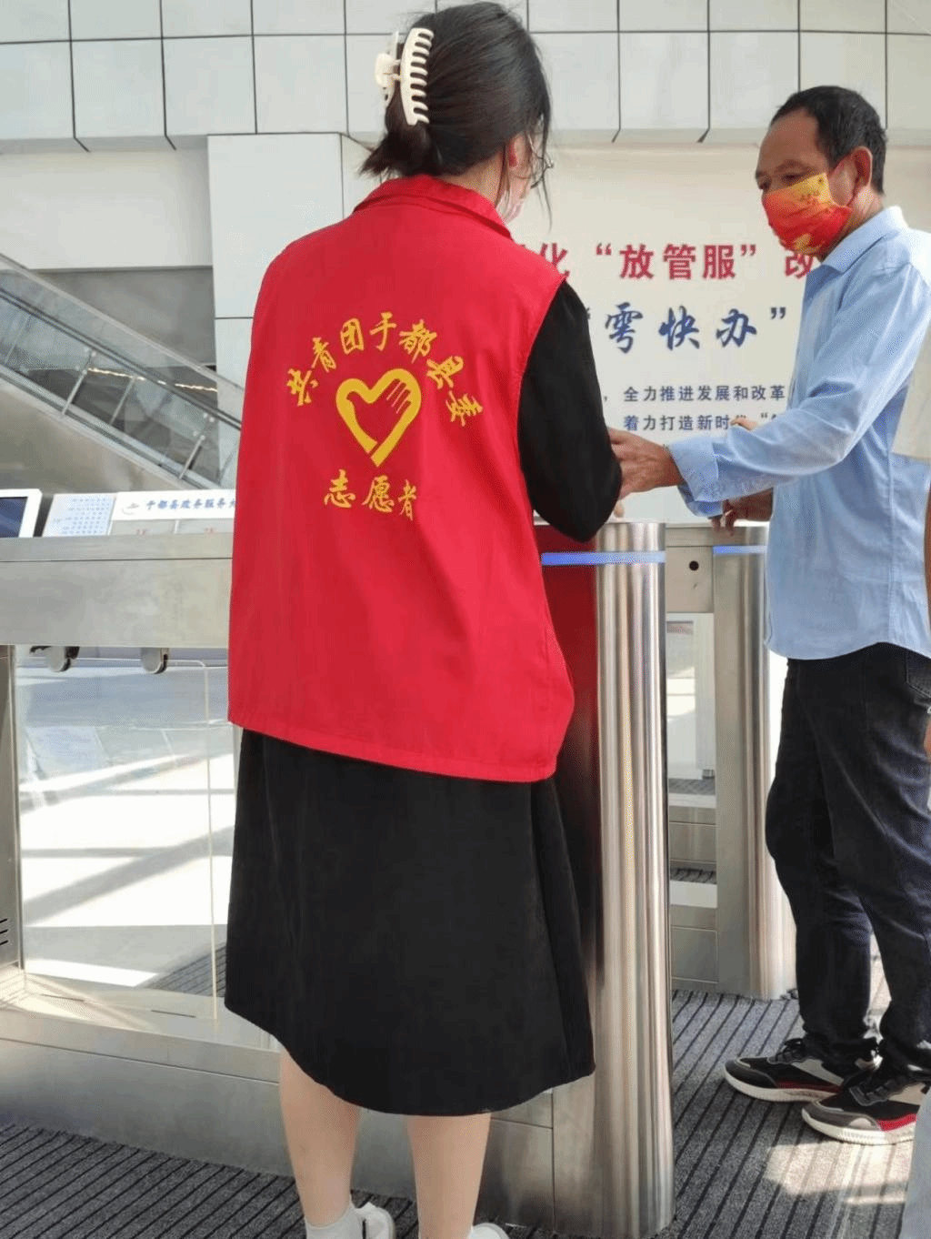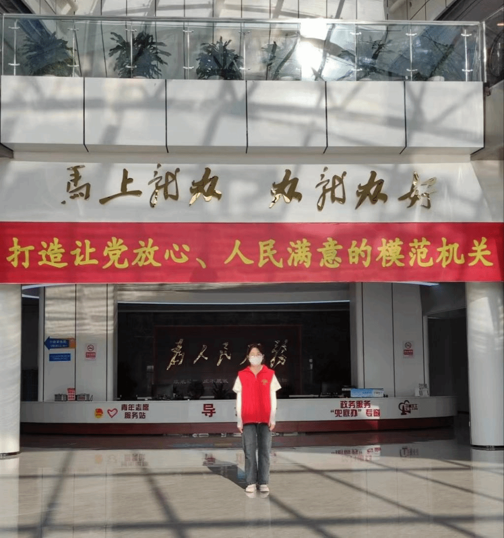 在为期一周的志愿服务实践中,邱林林同学以疫情期间的常态化防控工作,和与当地行政审批局相关的服务咨询工作为主。负责帮助来该地办理业务的人,进行体温测量,查验健康码、行程卡,指路,取号,以及辅助核酸检测等工作。