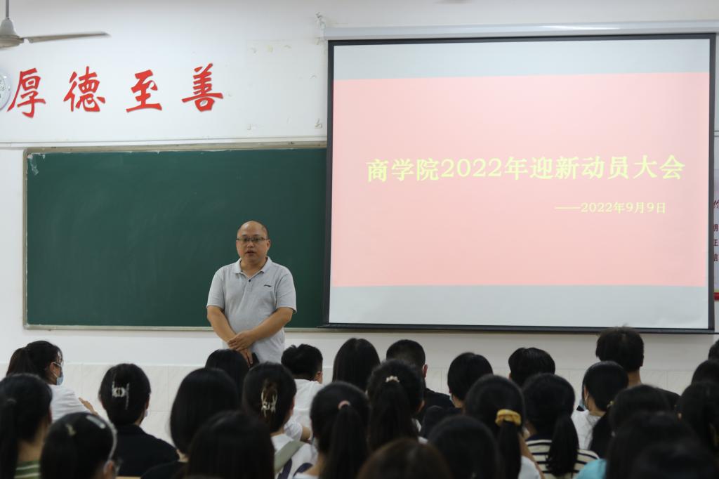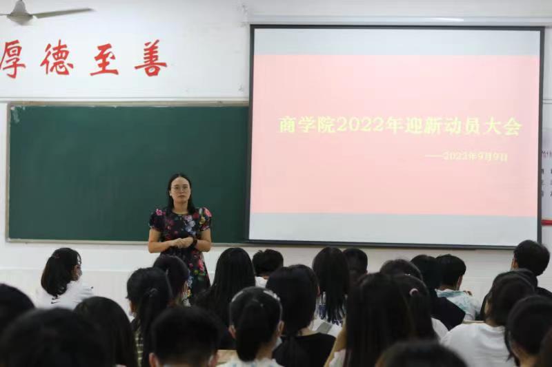 2022年9月9日12:10,为做好商学院秋季开学疫情防控和新生返校相关工作,商学院于跬步楼1114室召开商学院迎新动员部署大会,参加此次会议的有商学院党委副书记吴华军、商学院团委学生会书记易晶晶、商学院辅导员杨丽梅、商学院学生会全体成员、商学院22级各班班导及学生党支部全体成员。