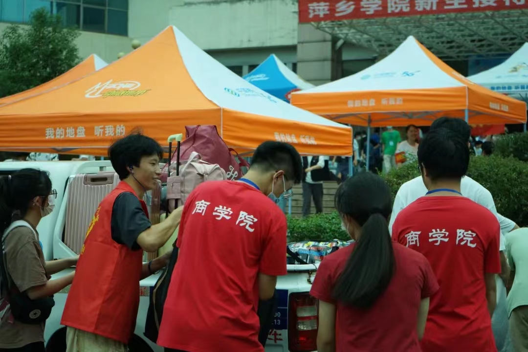 清早,便看到商学院迎新工作人员忙碌的身影,他们分别在学校的西大门和东大门安排了接待点。当看到家长带着孩子前来询问报到情况时,工作人员会热情的为他们解答,并告知他们需要先做好入校登记和检查核酸检测证明,然后会有相应的工作人员为新生将行李搬到指定的地点。