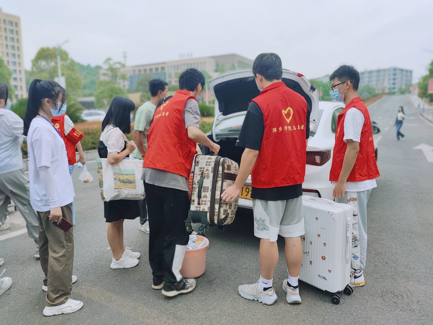 志愿者们早早到达工作岗位,用饱满的热情等待迎接新生。他们在火车站积极引导新生乘车到达学校,在东、西校门口为新生登记、扫码、测温、消毒,在校园里引导新生领军训衣被、办理校园网、领他们到寝室……炎热的天气使大家汗流浃背,但是每个人眼底的笑意都表现出了对新血液加入的喜悦。