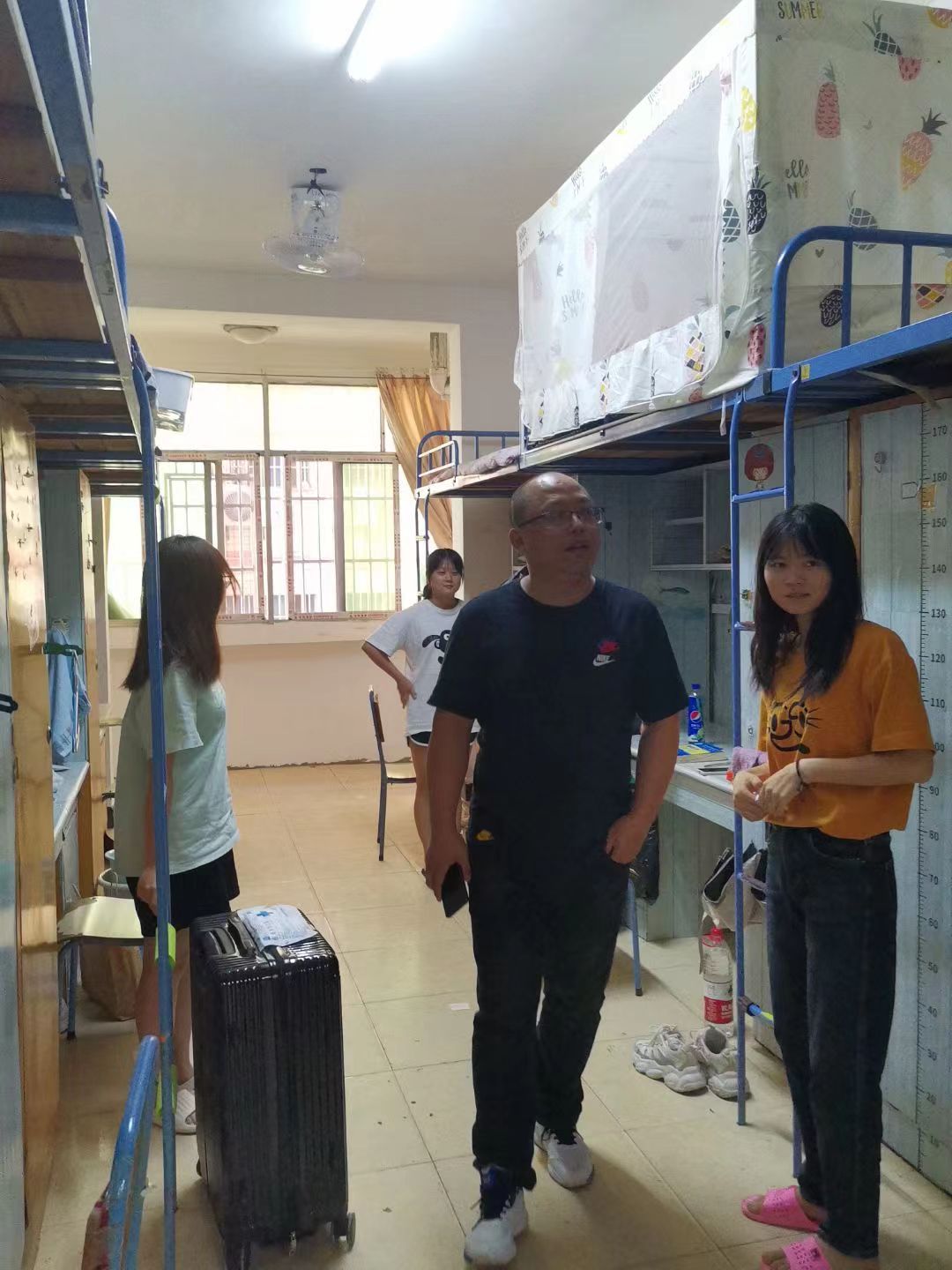 走进新生宿舍,吴书记十分关切地询问了同学们的家庭状况、入学情况和对学校的适应情况等,提醒新生尽快适应从中学到大学学习、生活方式的转变,鼓励新生被动学习变为主动学习,找到适合自己的学习方法。除此之外还叮嘱同学们要注意用电安全,人身安全,财务安全等问题。