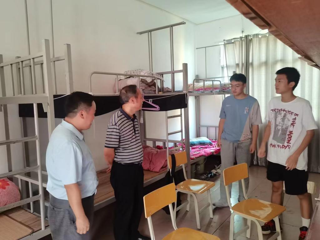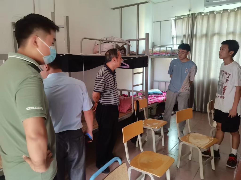 黄院长一行人走访了男生寝室,在观察宿舍环境之后,提醒大家刚来学校,要注意宿舍用水用电安全,禁止在宿舍使用大功率电器,有事及时向保卫处以及老师反映。视察环境之后,黄院长、李副院长及各位辅导员老师亲切地和同学们拉起家常,询问同学们与学校生活相关的各方面情况,解答同学们的问题,为同学们带来学院的关怀。
