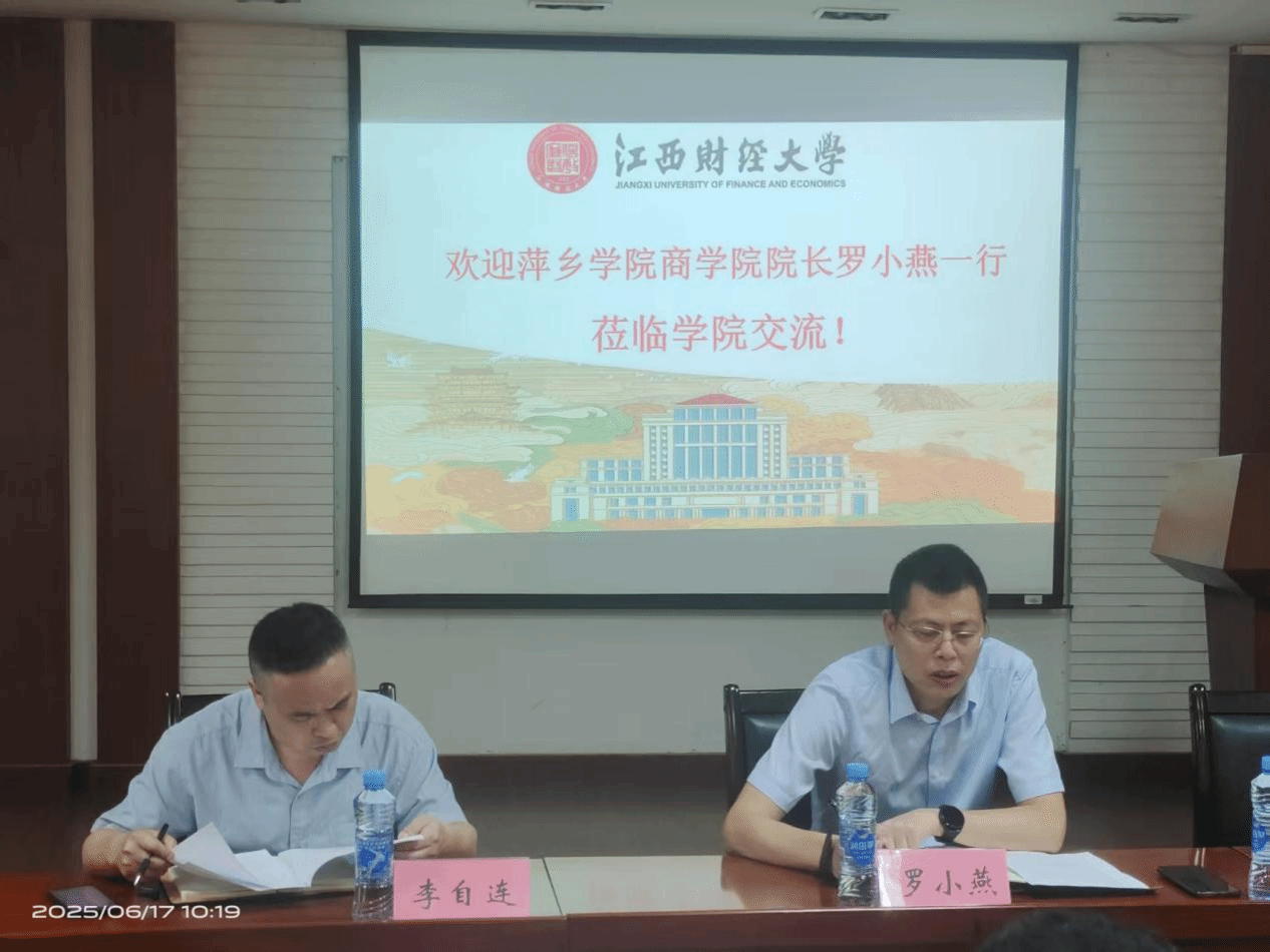 提升我院数字经济专业教学、招生和人才培养工作水平,2025年6月17日,罗小燕院长带队赴江西财经大学数字经济学院开展交流学习,副院长李自连、教研科长雷朝阳随同参加学习交流活动。江西财经大学数字经济学院院长何小钢等领导热情接待,并主持召开交流会,双方就数字经济领域相关议题展开深入探讨。