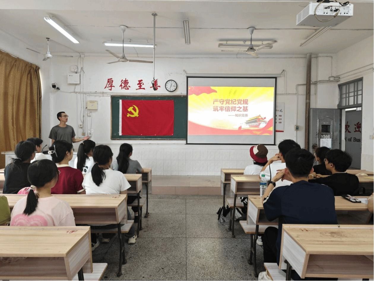 为深入贯彻落实全面从严治党战略方针,扎实推动党纪学习教育的开展,积极引导我校学生坚守党的原则,坚定党的信仰。2024年5月28日19:00—20:30,商学院学生党支部在跬步楼1309教室开展“严守党纪党规,筑牢信仰之基”活动。