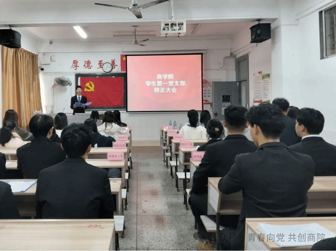 为进一步做好党员发展工作,为党组织注入新鲜血液,增强党支部的凝聚力、战斗力和影响力,加强我院党员队伍建设。2024年11月23日12:10,商学院学生第一党支部在跬步楼1307教室举办转正发展大会。商学院学生第一党支部全体在校学生党员、转正人员、转正人员介绍人同志、培养人同志及学生第一党支部部分工作人员参与此次大会。本次大会由刘涛主持。