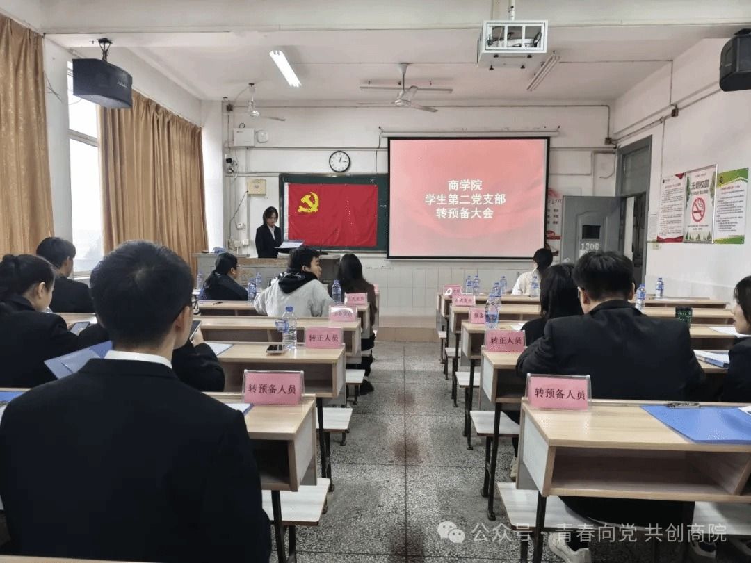 为进一步壮大学生党员队伍,增添新生力量,增强党组织的凝聚力,传承党的优良传统,推动党的事业发展。2024年11月28日12:10,商学院学生第二党支部于跬步楼1309教室举办转预备发展大会。商学院学生第二党支部全体在校学生党员、转预备人员、转预备人员介绍人同志、培养人同志以及部分学生第二党支部工作人员参与此次大会。本次大会由郭莉雯主持。