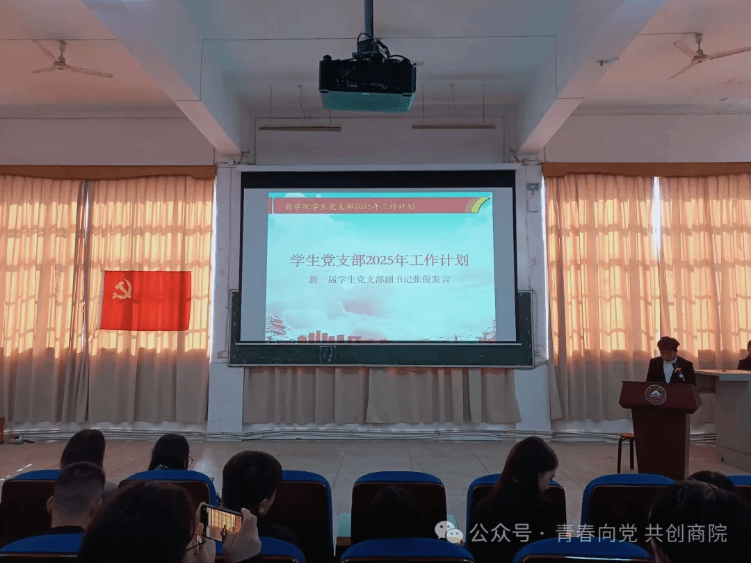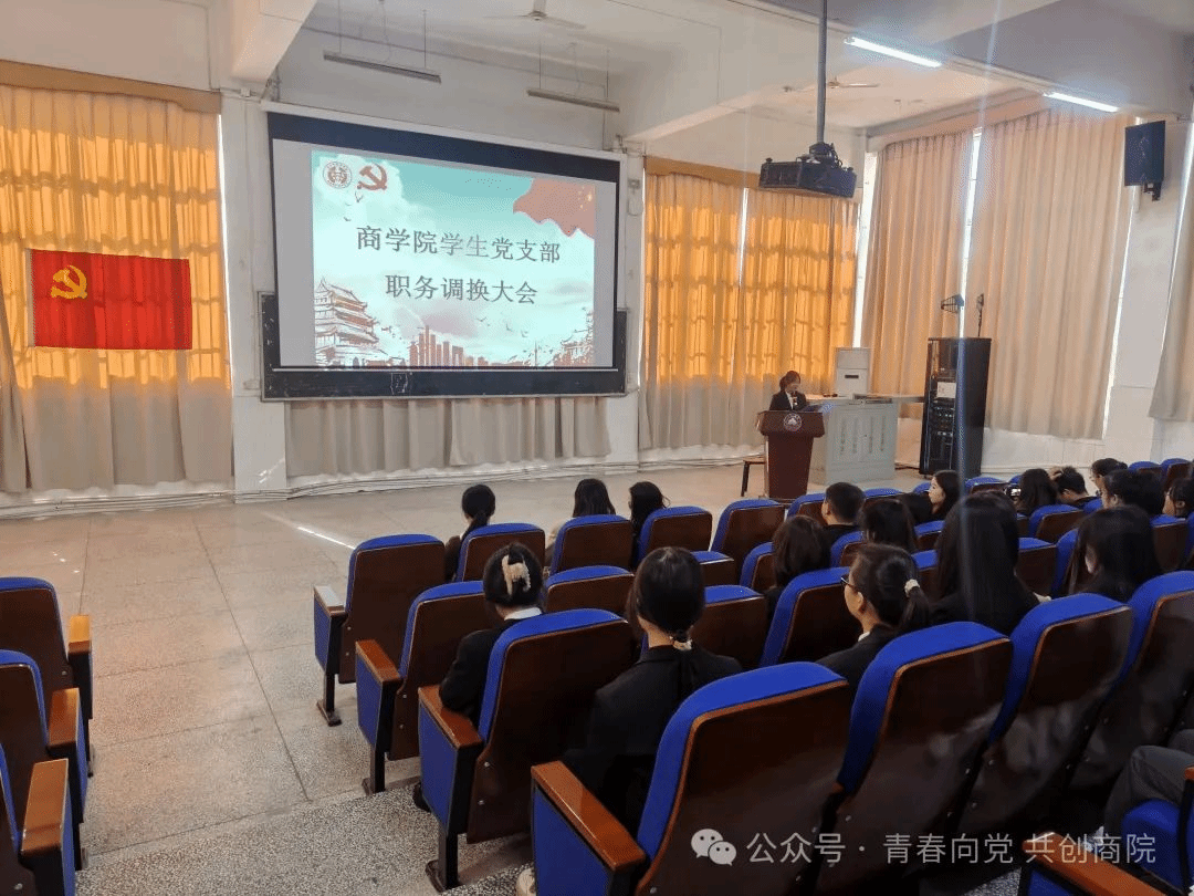 为进一步优化我院学生党支部组织架构,提升我院学生党员综合能力,使其更好地适应党建工作的新形势与新要求,为我院学生党支部发展注入新活力。2024年11月29日12:10,商学院学生党支部在跬步楼1101教室召开商学院学生党支部职务调换大会。出席本次会议的有商学院学生第一党支部书记易晶晶同志、商学院学生第一党支部组织委员胡桑同志、商学院学生第一党支部宣传委员邓旎涵同志。在校学生党员、入党积极分子及部分学生党支部工作人员参加此次会议,本次大会由郭莉雯主持。