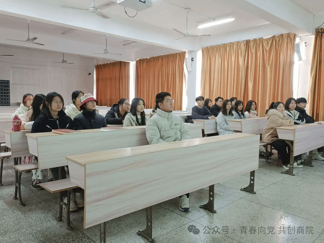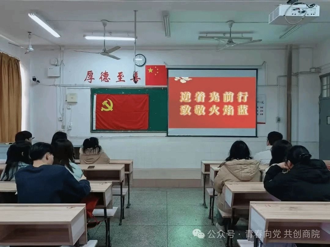 为提升我院学生党员及入党积极分子的消防安全意识与应对能力,强化其党性修养与安全素养。2024年12月15日14:00-16:00,商学院学生党支部在跬步楼1306教室开展“逆着光前行,致敬火焰蓝”主题观影活动,商学院部分入党积极分子参与。