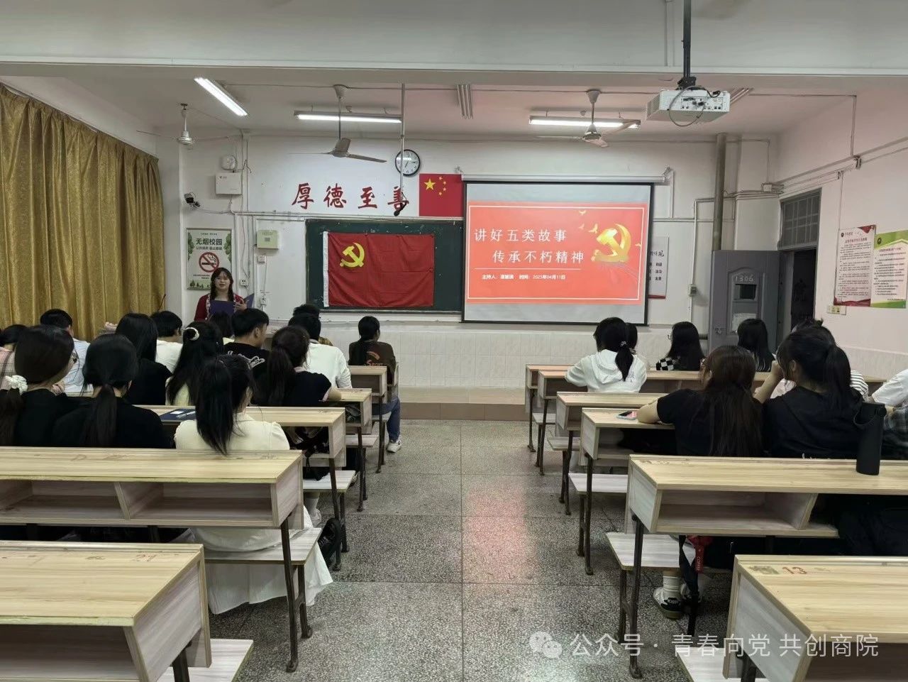 为将红色精神融入到我院学生党员及入党积极分子日常生活与学习中,传承发扬革命先辈精神品质,推进我院“三五三”党建模式建设。2025年4月11日19:00,商学院学生党支部在跬步楼1306教室开展“讲好五类故事,传承不朽精神”主题党日活动,商学院部分学生党员及入党积极分子参与。