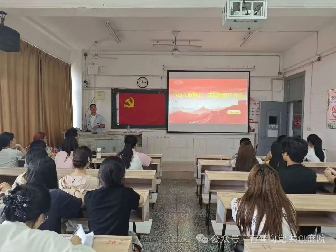 为深入贯彻中央八项规定精神学习教育,加强我院入党积极分子的作风建设,以严的标准、实的要求锻炼过硬本领。2025年5月23日12:10,商学院学生党支部在跬步楼1309教室开展“中央八项规定:清风拂面正气扬”党员宣讲活动。本次宣讲活动由学生党员郭宏主讲,商学院部分入党积极分子参与。
