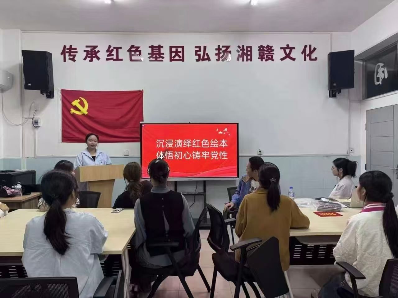 为加强家国情怀认同,进一步弘扬革命精神,强化我院学生党员及入党积极分子的党性修养与时代担当。2025年10月18日13:00-17:00,商学院学生党支部在跬步楼阅览室开展“沉浸演绎红色绘本,体悟初心铸牢党性”主题党日活动,商学院部分学生党员及入党积极分子参加。