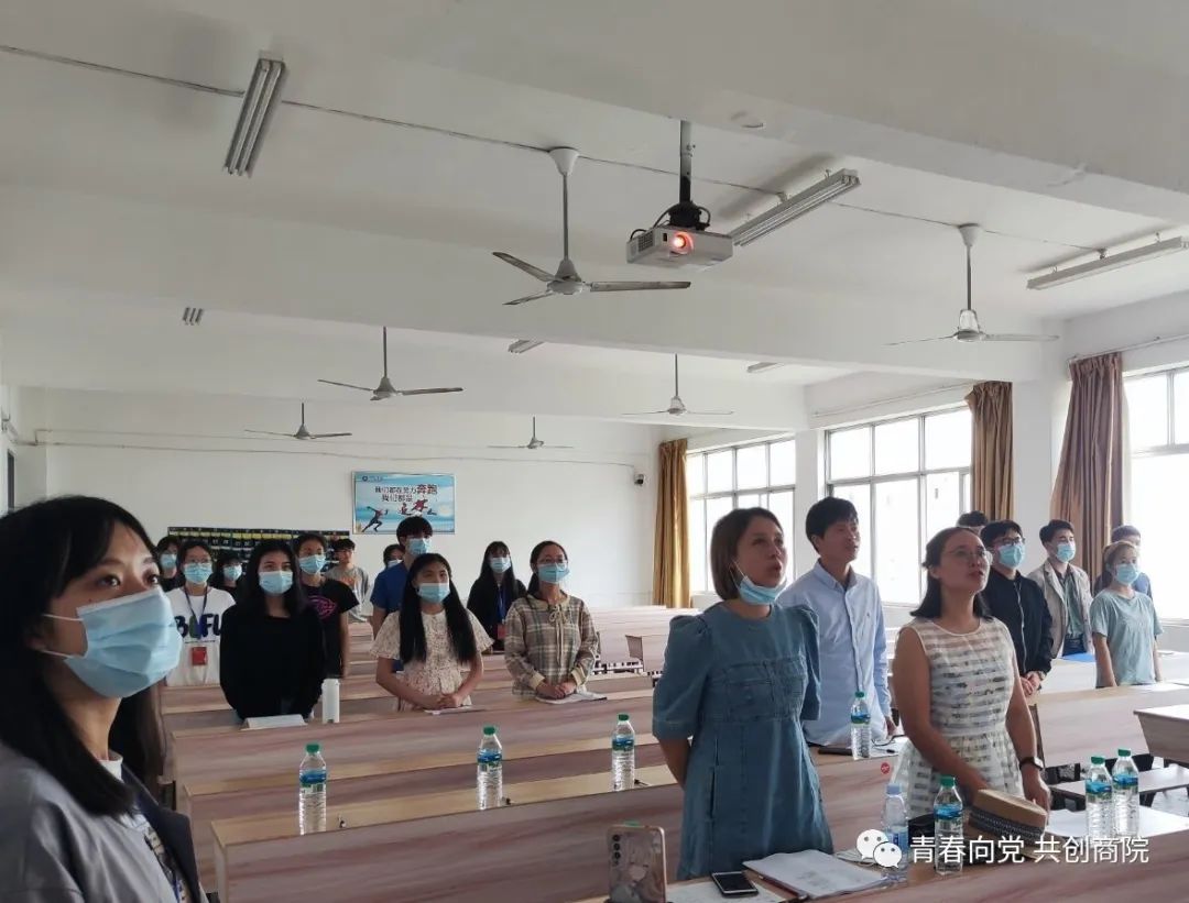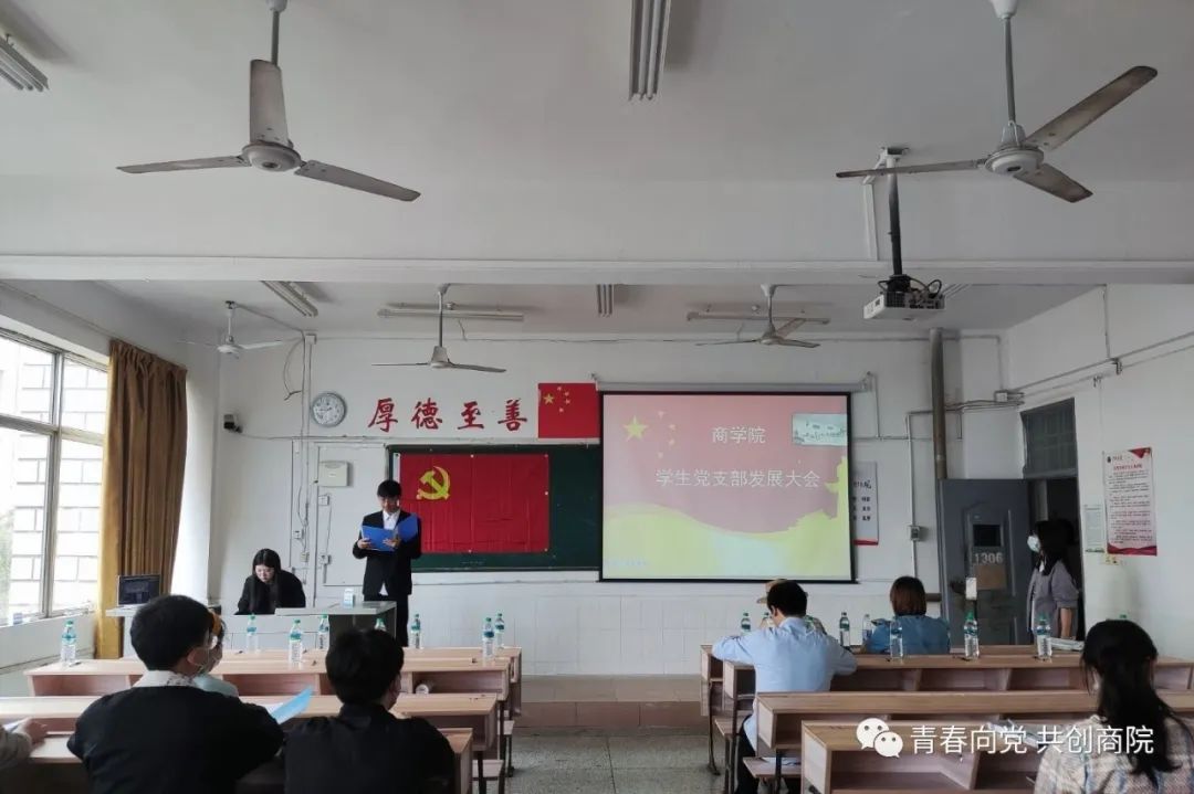 大会前夕,全体人员起立,共同奏唱国歌。伴随着大家铿锵的歌声,发展大会正式拉开序幕。首先,由商学院学生第一党支部书记易晶晶老师上台致辞,她提到要真正领悟和实践组织上入党一生一次、思想上入党一生一世的基本要求。本次大会共有五名转正人员,由于部分转正人员在外实习,因而采取线上线下结合的形式,依次汇报自身于考察期间在思想、学习、生活、工作等各个方面的表现及进行自我批评。随即培养人老师及入党介绍人老师对转正人员作出了客观点评,强调各位转正人员要坚持党组织的正确领导,积极参与各类党建活动,努力成为一名更加合格、优秀的中共党员,并对是否同意其转正发表了自己的意见。大会最后,商学院学生第一党支部所有正式党员讨论并交换意见,对全体转正人员作出投票,经决议,大会一致同意这五名同志成功转为中共正式党员。至此,大会落下帷幕。
