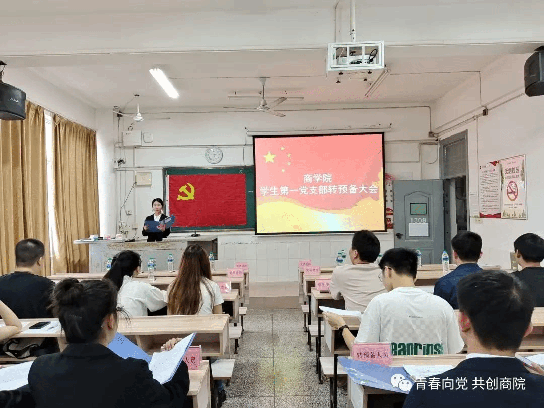 为进一步贯彻落实商学院党委关于党员发展工作的相关要求,为党和国家注入新鲜血液,凝聚奋进力量。2023年6月13日12:10,商学院学生第一党支部在跬步楼1309教室召开了转预备发展大会。参加本次发展大会的有商学院学生第一党支部所有在校学生党员、转预备人员及其入党介绍人和培养联系人老师,以及部分学生第一党支部工作人员,聂大茜主持本次会议。