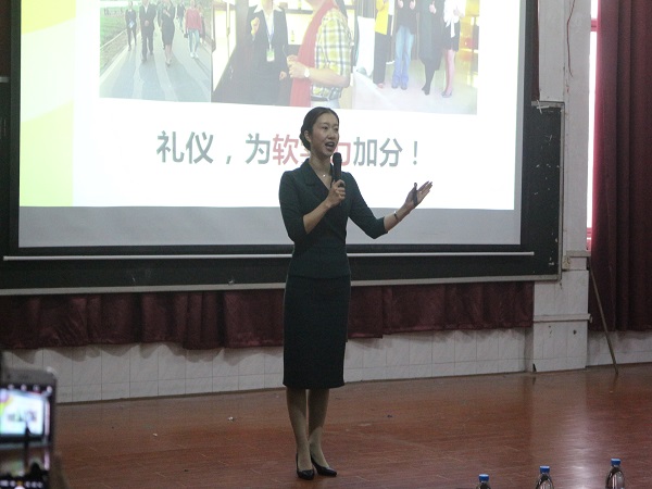 2018年11月15日14点10分,商学院于跬步楼1115为学生开展毕业生面试礼仪培训活动。此次邀请到高级礼仪训练师、高级企业培训师、中国青年演说家、演讲口才教练彭欣老师来为学生提供优质的服务知识培训。出席此次活动的嘉宾有:商学院团总支书记朱艳清老师,商学院辅导员曾竹老师。