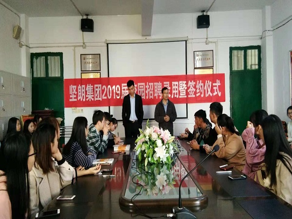 2018年11月27日,广东坚朗五金制品股份有限公司于我校跬步楼1204举行校园招聘录用暨签约仪式。