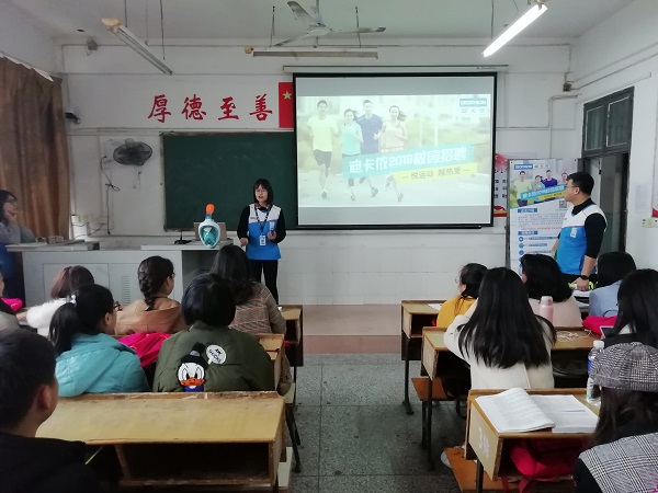 2019年3月7日中午11点迪卡侬在跬步楼1307举办宣讲会,商学院市场营销专业学生参加本次宣讲会,应邀出席的有商学院雷朝阳老师以及李霞老师。